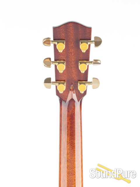 This Grand Auditorium is truly a joy to play! Perfect for both flatpicking and fingerstyle, this all solid guitar offers balance and resonance in equal measure. The solid european spruce is perfect for vocal accompaniment, and the mahogany sings out warm and clear. This particular guitar has lightly-flamed back and sides, and plays extrodinarily clean. It feels and sounds as if it's already opened up.