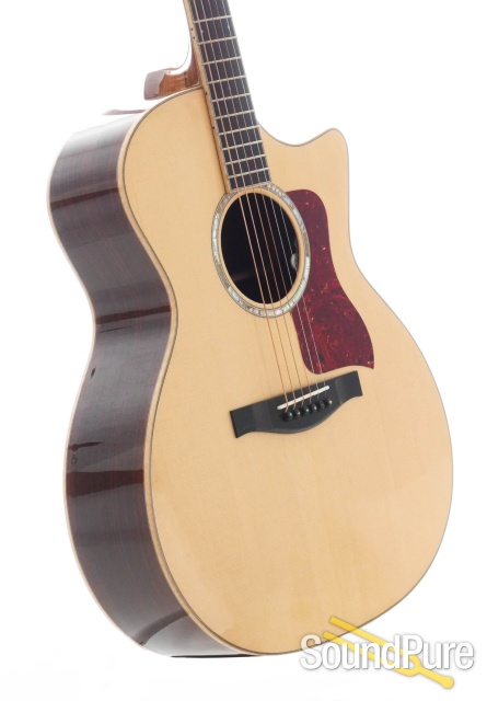 Highly select Indian Rosewood back and sides, AAA spruce top, hand inlayed abalone rosette, highly figured maple binding on body, fingerboard and headstock, ebony Gotoh tuners, Elixir light gauge strings, Grand Concert Model features a slotted headstock, molded hardshell case included.