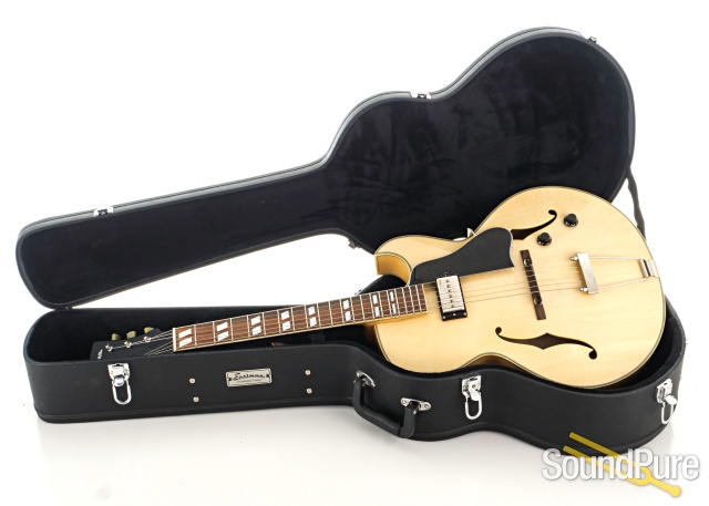 Eastman Guitars are fine handmade instruments at very reasonable prices. Their archtops and flat tops are made with solid, hand-carved tops, backs, and sides. They offer many of the traditional archtop styles in their Uptown series with options of different woods, dimensions, and pickups. The Thinline series, the El Rey and the Jon Pisano signature line offer some great alternatives, and feature the same kinds of customizable options. Eastman Uptown Deluxe series archtops are custom shop pieces with select AAA grade tone woods, wood binding with inlaid purfilng, and five piece necks.