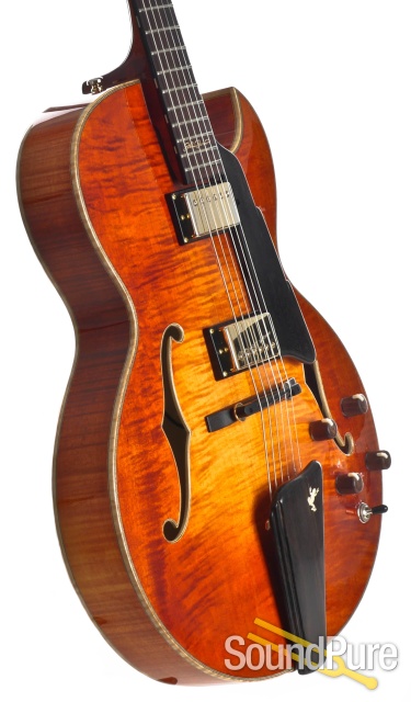 There's something great about thinner archtop designs, they're light, they're comfortable, they've got players who play a lot of music in mind. This Pisano signature model has all the trappings of a workhorse guitar with beautifully executed aesthetics. The pickups in these things are tremendously versatile and cover practically every tone on the jazz spectrum you can think of. This guitar can do all the things an ES-175 can do and more.