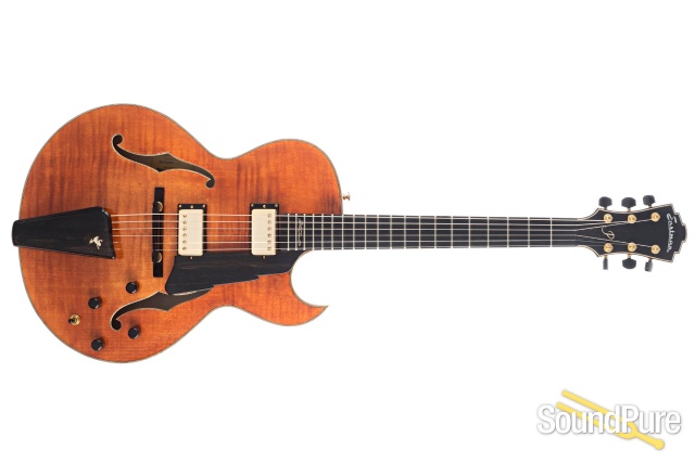 There's something great about thinner archtop designs, they're light, they're comfortable, they've got players who play a lot of music in mind. This Pisano signature model has all the trappings of a workhorse guitar with beautifully executed aesthetics. The pickups in these things are tremendously versatile and cover practically every tone on the jazz spectrum you can think of. This guitar can do all the things an ES-175 can do and more.