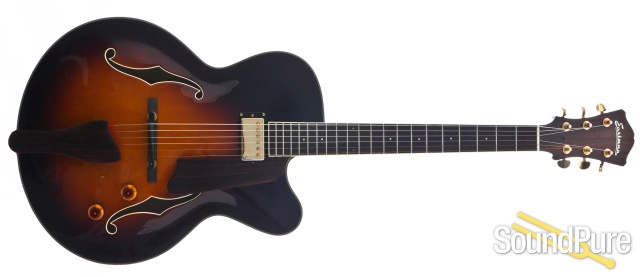 Eastman Guitars are fine handmade instruments at very reasonable prices. Their archtops and flat tops are made with solid, hand-carved tops, backs, and sides. They offer many of the traditional archtop styles in their Uptown series with options of different woods, dimensions, and pickups. The Thinline series, the El Rey and the Jon Pisano signature line offer some great alternatives, and feature the same kinds of customizable options. Eastman Uptown Deluxe series archtops are custom shop pieces with select AAA grade tone woods, wood binding with inlaid purfilng, and five piece necks.