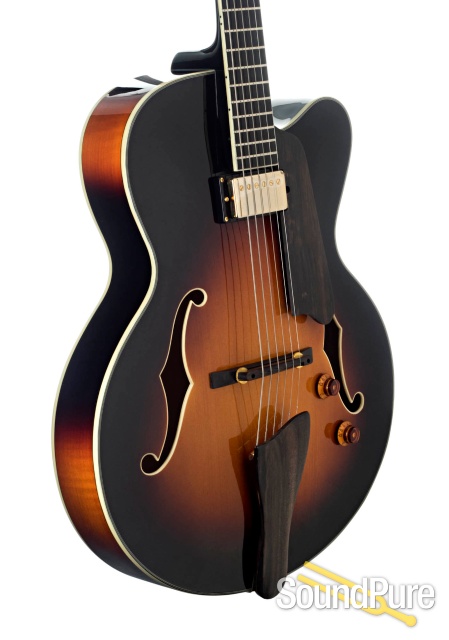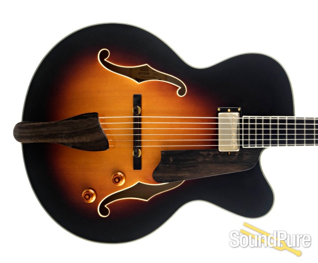 Carved Spruce top, laminated back and sides with Ebony bridge, tailpiece, pickguard and fretboard. Vintage tone with superior midrange and volume. Classic Venetian cutaway, mounted humbucking pickup design.