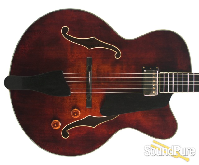 Carved Spruce top, laminated back and sides with Ebony bridge, tailpiece, pickguard and fretboard. Vintage tone with superior midrange and volume. Classic Venetian cutaway, mounted humbucking pickup design.