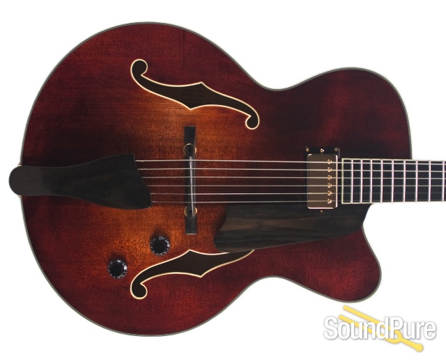 Carved Spruce top, laminated back and sides with Ebony bridge, tailpiece, pickguard and fretboard. Vintage tone with superior midrange and volume. Classic Venetian cutaway, mounted humbucking pickup design.