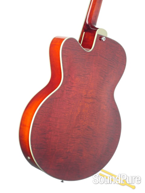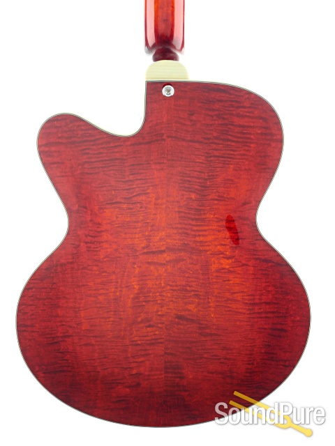 Eastman Guitars are fine handmade instruments at very reasonable prices. Their archtops and flat tops are made with solid, hand-carved tops, backs, and sides. They offer many of the traditional archtop styles in their Uptown series with options of different woods, dimensions, and pickups. The Thinline series, the El Rey and the Jon Pisano signature line offer some great alternatives, and feature the same kinds of customizable options. Eastman Uptown Deluxe series archtops are custom shop pieces with select AAA grade tone woods, wood binding with inlaid purfilng, and five piece necks.