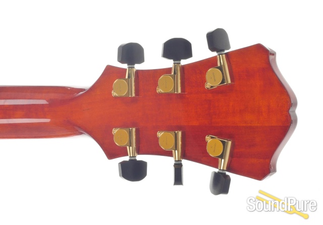 Carved Spruce top, laminated back and sides. Ebony bridge, tailpiece, pickguard and fretboard with vintage tone with superior midrange and volume. Classic Venetian cutaway, mounted humbucking pickup design.