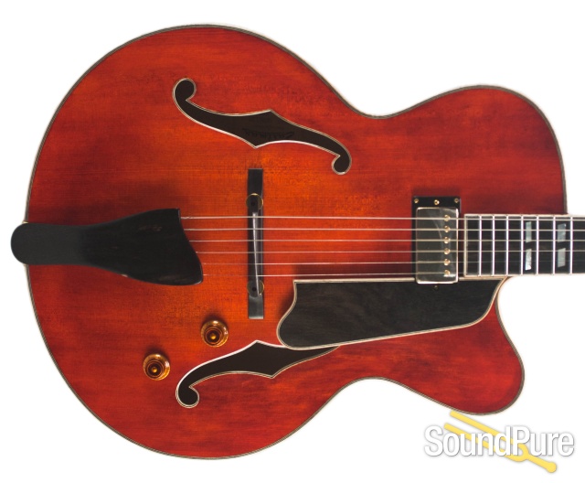 Eastman Guitars are fine handmade instruments at very reasonable prices. Their archtops and flat tops are made with solid, hand-carved tops, backs, and sides. They offer many of the traditional archtop styles in their Uptown series with options of different woods, dimensions, and pickups. The Thinline series, the El Rey and the Jon Pisano signature line offer some great alternatives, and feature the same kinds of customizable options. Eastman Uptown Deluxe series archtops are custom shop pieces with select AAA grade tone woods, wood binding with inlaid purfilng, and five piece necks.