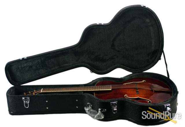 Carved Spruce top, solid carved mahogany back and sides with Rosewood bridge, tailpiece, pickguard and fretboard. Vintage tone with superior midrange and volume. Classic Non-cutaway.