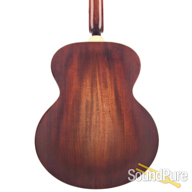 Carved Spruce top, solid carved mahogany back and sides with Rosewood bridge, tailpiece, pickguard and fretboard. Vintage tone with superior midrange and volume. Classic Non-cutaway.