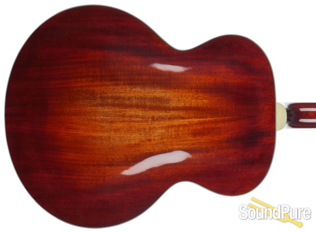 Carved Spruce top, solid carved mahogany back and sides with Rosewood bridge, tailpiece, pickguard and fretboard. Vintage tone with superior midrange and volume. Classic Non-cutaway.