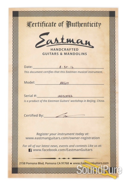 Eastman AR610E Spruce/Mahogany Archtop #14650022  From Eastman