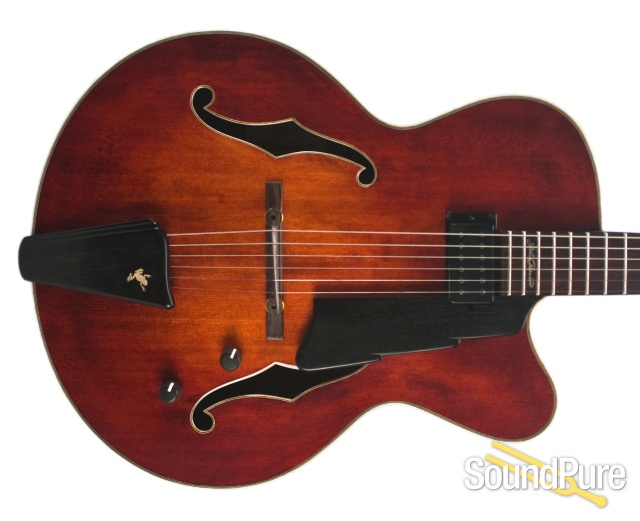 Designed by renowned guitarist John Pisano. Carved spruce top, carved mahogany back and sides with Rosewood bridge, tailpiece and pickguard. Custom Kent Armstrong humbucker pickup.