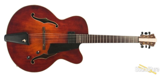 Designed by renowned guitarist John Pisano. Carved spruce top, carved mahogany back and sides with Rosewood bridge, tailpiece and pickguard. Custom Kent Armstrong humbucker pickup.