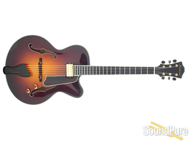 Eastman Guitars are fine handmade instruments at very reasonable prices. Their archtops and flat tops are made with solid, hand-carved tops, backs, and sides. They offer many of the traditional archtop styles in their Uptown series with options of different woods, dimensions, and pickups. The Thinline series, the El Rey and the Jon Pisano signature line offer some great alternatives, and feature the same kinds of customizable options. Eastman Uptown Deluxe series archtops are custom shop pieces with select AAA grade tone woods, wood binding with inlaid purfilng, and five piece necks.