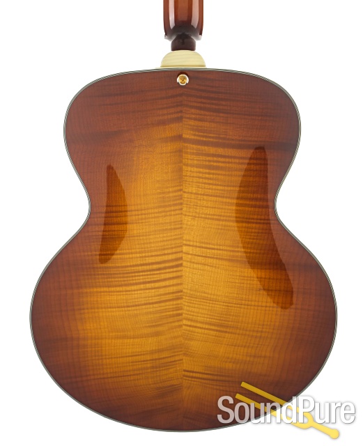 Eastman Guitars are fine handmade instruments at very reasonable prices. Their archtops and flat tops are made with solid, hand-carved tops, backs, and sides. They offer many of the traditional archtop styles in their Uptown series with options of different woods, dimensions, and pickups. The Thinline series, the El Rey and the Jon Pisano signature line offer some great alternatives, and feature the same kinds of customizable options. Eastman Uptown Deluxe series archtops are custom shop pieces with select AAA grade tone woods, wood binding with inlaid purfilng, and five piece necks.