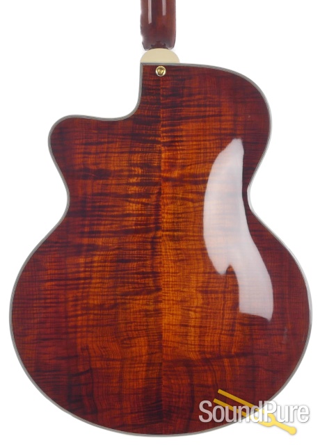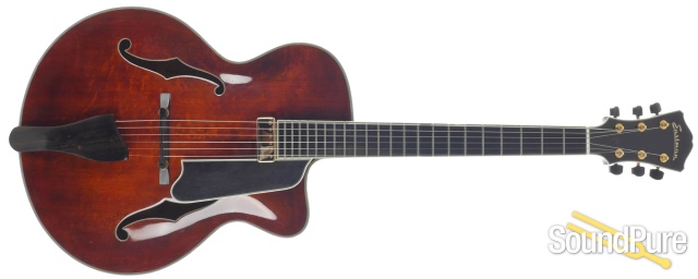 Eastman Guitars are fine handmade instruments at very reasonable prices. Their archtops and flat tops are made with solid, hand-carved tops, backs, and sides. They offer many of the traditional archtop styles in their Uptown series with options of different woods, dimensions, and pickups. The Thinline series, the El Rey and the Jon Pisano signature line offer some great alternatives, and feature the same kinds of customizable options. Eastman Uptown Deluxe series archtops are custom shop pieces with select AAA grade tone woods, wood binding with inlaid purfilng, and five piece necks.