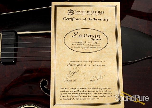 Eastman Guitars are fine handmade instruments at very reasonable prices. Their archtops and flat tops are made with solid, hand-carved tops, backs, and sides. They offer many of the traditional archtop styles in their Uptown series with options of different woods, dimensions, and pickups. The Thinline series, the El Rey and the Jon Pisano signature line offer some great alternatives, and feature the same kinds of customizable options. Eastman Uptown Deluxe series archtops are custom shop pieces with select AAA grade tone woods, wood binding with inlaid purfilng, and five piece necks.
