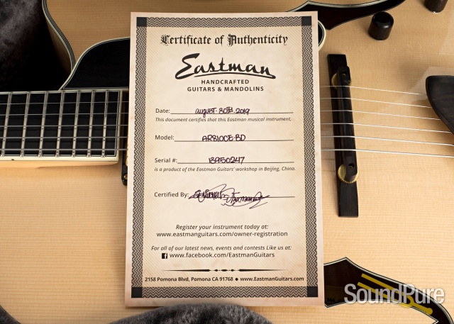 The Solid Maple back and sides are what piece everything together here, with projection and articulate clarity not found in most guitars. The Ivoroid binding is an elegant addition to the blonde finish, looking classy as can be. This guitar would beautifully fit any Jazz ensemble or even be the perfect compliment to a blues guitarist. Exceptional build quality, fantastic sound, comfort and playability through the roof - is there any reason not to get an Eastman archtop?