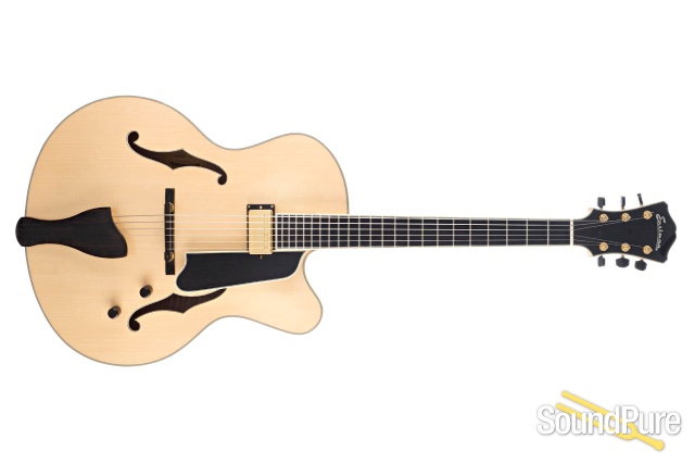 Old-World craftsmanship creates a new jazz standard. Carved spruce top, carved maple back and sides with Ebony bridge, tailpiece, pickguard, and fretboard. Classic Venetian cutaway.