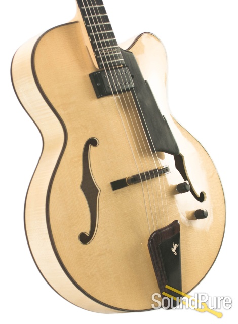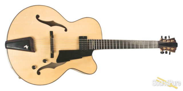 Eastman Guitars are fine handmade instruments at very reasonable prices. Their archtops and flat tops are made with solid, hand-carved tops, backs, and sides. They offer many of the traditional archtop styles in their Uptown series with options of different woods, dimensions, and pickups. The Thinline series, the El Rey and the Jon Pisano signature line offer some great alternatives, and feature the same kinds of customizable options. Eastman Uptown Deluxe series archtops are custom shop pieces with select AAA grade tone woods, wood binding with inlaid purfilng, and five piece necks.