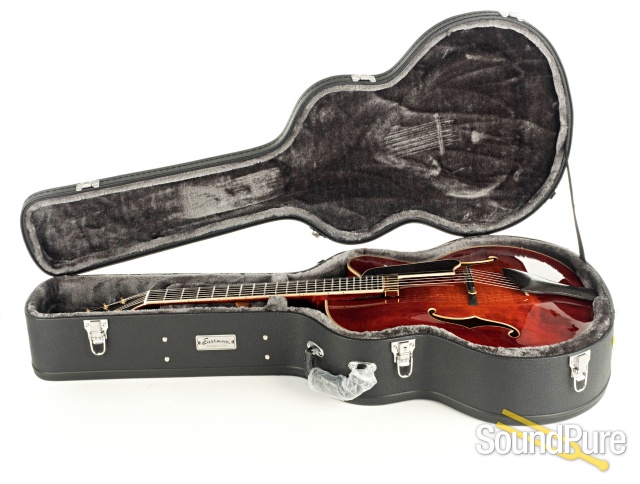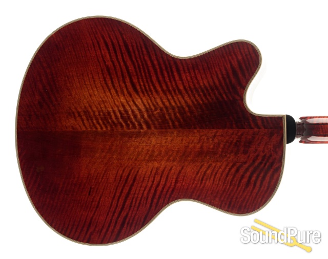 Amazing flame! You can get lost in there if you aren't careful. Play the guitar for a couple of minutes and you will lose yourself all over again in its warm, comforting wash of pure archtop tone. The neck is incredibly smooth on this one and it makes playing even the toughest passages feel a little easier. Even more comforting still is the knowledge that your tone is going to be full, airy, and complex, and with this guitar you can rest assured it will be. The full 17" body produces an incredibly well-rounded single note sound and lush overtones that make chords sing.