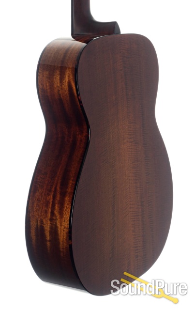 Check out the flamed quality to the mahogany back on this one!  You simply won't find an Adirondack topped acoustic around this price that compares to this one.  Even Martins, Taylors and Gibsons that are twice as expensive don't always hold up to this line!