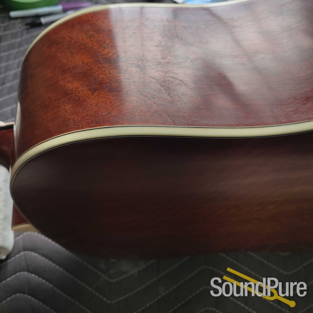 Built with the methods and materials of the “Golden Era” of the 30’s & 40’s. Solid Adirondack spruce top, solid mahogany back & sides with extremely dynamic response, from soft picking to hard strumming. Glorious full-bodied tone and room-filling volume.