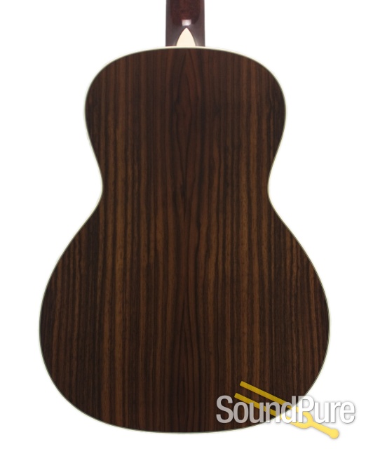 This delightful little Double-O with rosewood back and sides has a rich and spicy tone reminiscent of the smaller bodied flat-tops of the 1930s. The rosewood provides a nice bite to the brightness, but underneath there's a nice vibrant bass spectrum you typically would find on a $4000 vintage instrument. Despite being a smaller-bodied guitar this box has a 1 3/4" nut width that feels like a wide-open road, perfect for down-home back-country blues picking or accompanying an Appalachian ballad. A Stately tobacco burst rounds out this wicked time machine.
