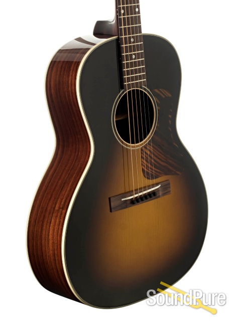 This delightful little Double-O with rosewood back and sides has a rich and spicy tone reminiscent of the smaller bodied flat-tops of the 1930s. The rosewood provides a nice bite to the brightness, but underneath there's a nice vibrant bass spectrum you typically would find on a $4000 vintage instrument. Despite being a smaller-bodied guitar this box has a 1 3/4" nut width that feels like a wide-open road, perfect for down-home back-country blues picking or accompanying an Appalachian ballad. A Stately tobacco burst rounds out this wicked time machine.