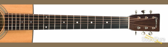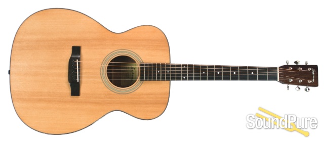 I have played dozens of the traditional series OMs with Adirondack tops and it is a joy to hear this design outfitted with a Sitka top. The warmth and balance of the Sitka is paired wonderfully with the expressive character of the Mahogany back and sides. This combination provides this guitar with tone that is familiar and inviting, but never dull. The guitar responds very well to changes in dynamics but still manages to take quite a lot of volume before breaking up.