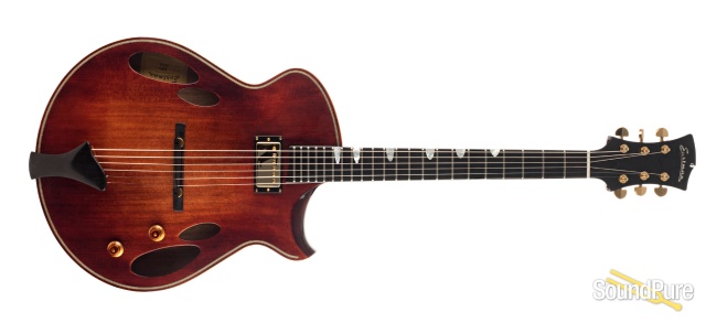 I'll admit that I'm a bit of a guitar purist. I don't like crazy designs or modern guitar build techniques. I like the way old stuff sounds and feels and want new stuff to replicate that. This new Ambrosio-design ER4 from Eastman made me forget about all those holdups of mine. This guitar sings SWEET. It's got a great articulate voice that's got tons of authoritative mid-range but still has a nice high-end bite to it, like if mahogany and maple had a lovechild. It looks like a starship, too, so you'll be sure to turn some heads with this one. Funny business aside, it has the playability and tone a working jazz musician would demand from an instrument, and could easily stand up to 5K and above custom build.