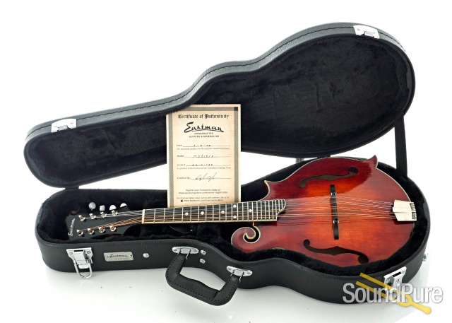 Eastman doesn't mess around with their mandolins, period.  From their broad catalogue of handcrafted instruments, mandolins constitute about a third of their overall production--that dedication shows in this lovely specimen.  Where else can you get handcarved, solid wood construction with a hand painted, spirit-based varnish finish to boot?  Remarkably lightweight.  We're loving the subtle antiquing and warm, orange-ish glow, too.  For how much?!  Unreal.