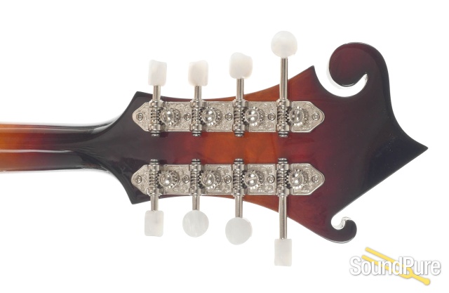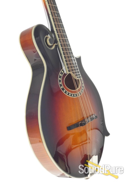 This is one seriously clean mandolin. From the aethetics to the fretwork, the thing is just squeaky. A lot of the time new mandolins will have good fundamental tone but sound too busy, requiring a long break-in period, but this mando has awesome focused and tight tone. Even up the neck, the high notes just pop and project just like you hear them in your head. The classic finish really showcases the gorgeous grain on the top, too. I wouldn't hestitate to bring this one anywhere, whether it's Galax or the recording studio.