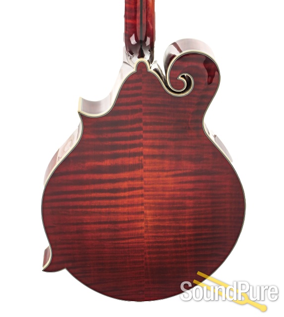 An inspired recreation of a unique specialty instrument from the Golden Age of mandolins. Solid Spruce Top, Solid Highly-flamed Maple back & sides with ebony fingerboard & adjustable ebony bridge. Warm & mellow tones with excellent sound projection.