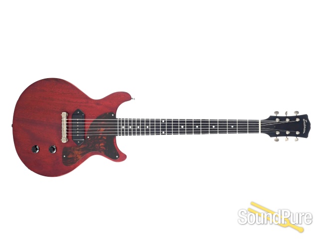 Eastman definitely shows that less is more with their new SB55/v line. The capless body and single Lollar P90 bring out the tone and resonance of the Okoume body without leaving you wanting more. A compensated bridge, no load tone pot, and lower output allow for the every detail of the sound to come out perfectly clear. The SB55/v has quickly become a shop favorite, and we're sure you'll feel the same.