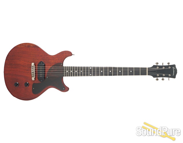 Double cut, single pickup, solid body electric from Eastman in antique varnish with a Lollar 50's Spec Dog Ear P-90.
