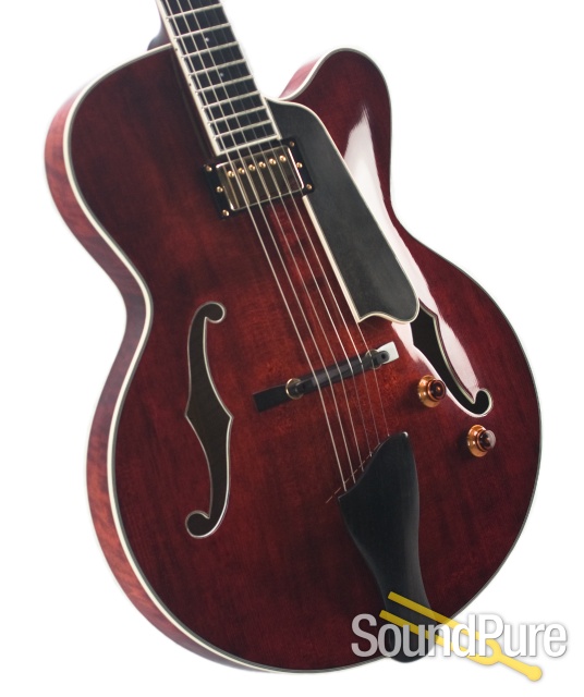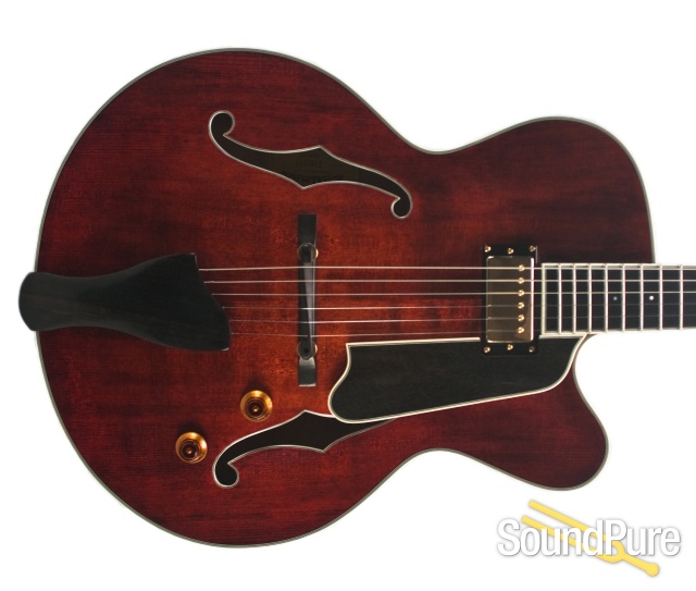 This hollowbody 16" Thinline single cutaway is handcarved, it has a spruce top and maple body with a classic finish and a bold tone.