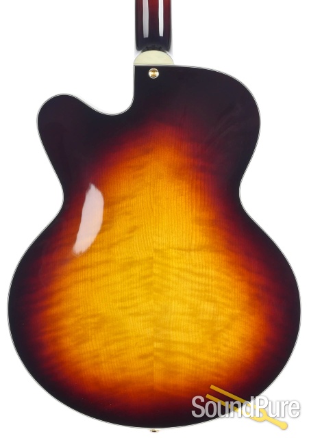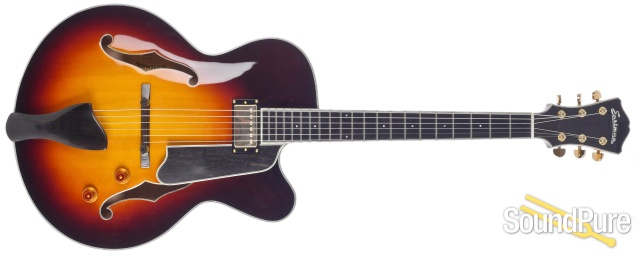This hollowbody 16" Thinline single cutaway is handcarved, it has a spruce top and maple body with a classic finish and a bold tone.