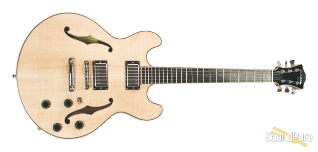 A compact 15” thinline with the soul of a full-body archtop. Carved Maple Top, Carved Mahogany back and sides with remarkable versatility for jazz, blues, and rock. Dual Seymour Duncan 59 Humbucker Pickups.