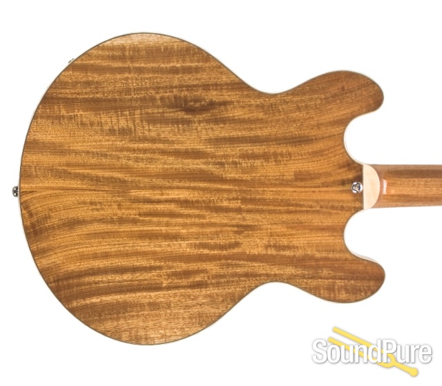 These unique 1 3/4" deep instruments come with a choice of solid, hand-carved mahogany or maple backs with solid spruce or maple tops. The maple body guitars sport handsome gold hardware, 7-ply binding on the body, split block inlays and maple necks with ebony fingerboards. The mahogany body guitars come with chrome hardware, 3 ply bindings, dot inlays, mahogany necks and rosewood fingerboards. Both of these guitars come equipped with powerful Kent Armstrong Humbucking pickups that can slip effortlessly from a rich, woody jazz sound to a satisfying, crunchy, vintage rock tone that explodes out of your amp. These versatile guitars neatly span the distance between a fine hollow body archtop and the classic center block thinline model guitar.