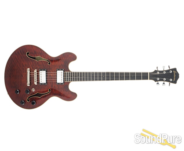 A compact 15” thinline with the soul of a full-body archtop. Carved Maple Top, Carved Mahogany back and sides with remarkable versatility for jazz, blues, and rock. Dual Seymour Duncan 59 Humbucker Pickups.