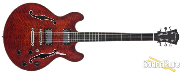A compact 15” thinline with the soul of a full-body archtop. Carved Maple Top, Carved Mahogany back and sides with remarkable versatility for jazz, blues and rock. Dual Seymour Duncan 59 Humbucker Pickups.