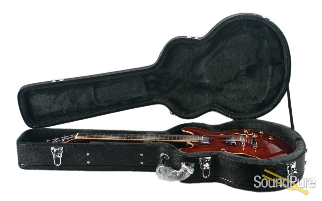 A compact 15” thinline with the soul of a full-body archtop. Carved Maple Top, Carved Mahogany back and sides with remarkable versatility for jazz, blues and rock. Dual Seymour Duncan 59 Humbucker Pickups.