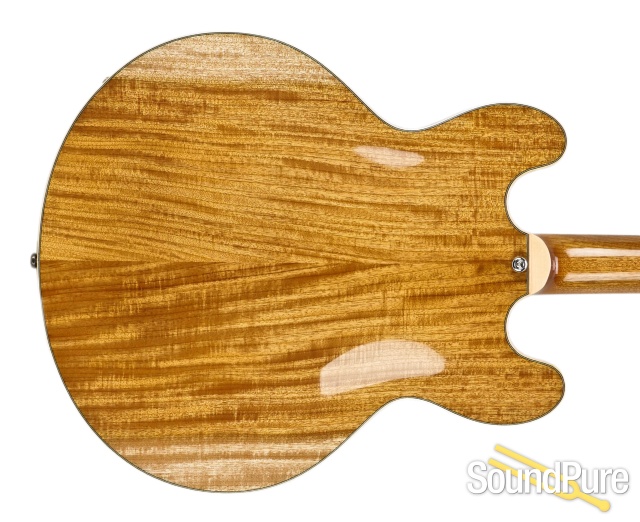 These unique 1 3/4" deep instruments come with a choice of solid, hand-carved mahogany or maple backs with solid spruce or maple tops. The maple body guitars sport handsome gold hardware, 7-ply binding on the body, split block inlays and maple necks with ebony fingerboards. The mahogany body guitars come with chrome hardware, 3 ply bindings, dot inlays, mahogany necks and rosewood fingerboards. Both of these guitars come equipped with powerful Kent Armstrong Humbucking pickups that can slip effortlessly from a rich, woody jazz sound to a satisfying, crunchy, vintage rock tone that explodes out of your amp. These versatile guitars neatly span the distance between a fine hollow body archtop and the classic center block thinline model guitar.