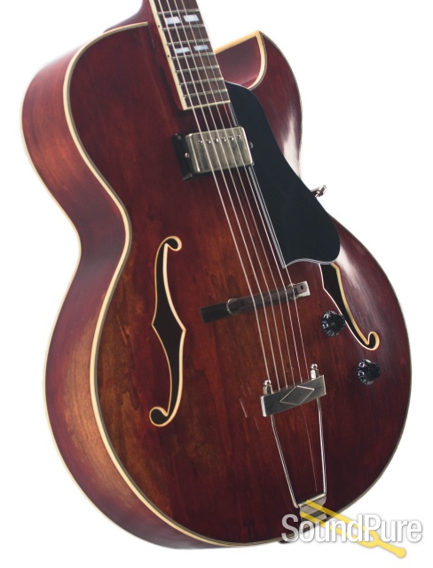 Laminated maple top, back and sides. Rosewood bridge and fretboard, antiqued tailpiece with vintage tone, superior midrange, and volume. Classic Florentine cutaway, mounted humbucking pickup design.