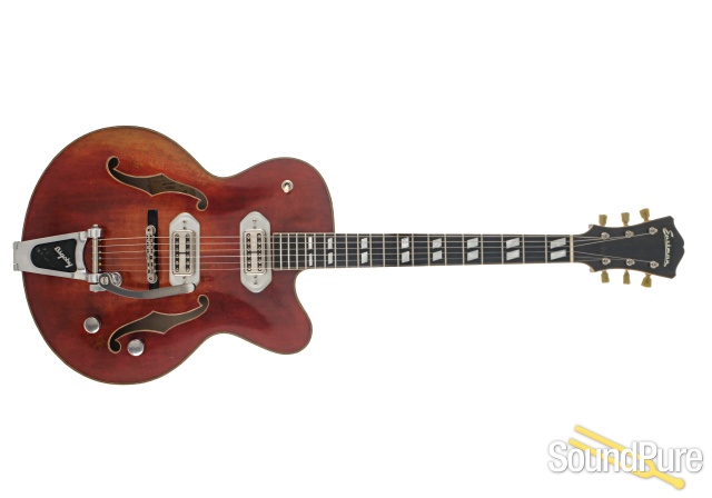 A full-size 16” thinline in Antique Varnish, with TV jones FilterTron Pickups and a Varnish Finish!