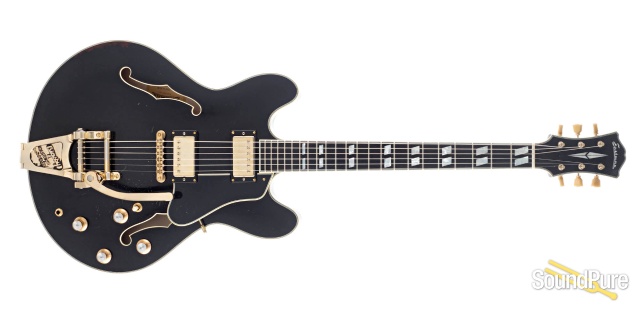 A limited edition thinline from Eastman with gold hardware, Bigsby, and an antiqued varnish finish! Number 39 of only 60 produced!