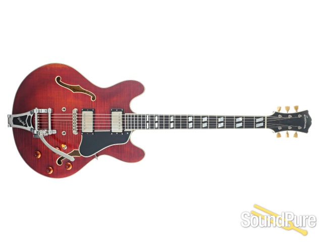 Eastman Guitars are fine handmade instruments at very reasonable prices. Their archtops and flat tops are made with solid, hand-carved tops, backs, and sides. They offer many of the traditional archtop styles in their Uptown series with options of different woods, dimensions, and pickups. The Thinline series, the El Rey and the Jon Pisano signature line offer some great alternatives, and feature the same kinds of customizable options. Eastman Uptown Deluxe series archtops are custom shop pieces with select AAA grade tone woods, wood binding with inlaid purfilng, and five piece necks.