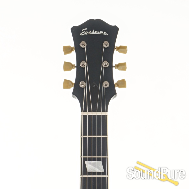 There is something really, really unique about the voice of a thinline hollowbody with P90s - from the jangly sounds of the 60s to the fuzzed out blues of today, this guitar does something that others just can't. It plays and looks so smoothly and beautifully, and the sound is frankly to die for. Chords pop with a sense of air and warmth and sound big and full, and the whole guitar just dances under the fingers but with just the right amount of sizzle, pop and twang. In the right amp setting, this guitar roars in both a dirty and a clean way - it's loud, and has a really nice lower midrange oomph. This is a special example of an Eastman, and you shouldn't miss this one!